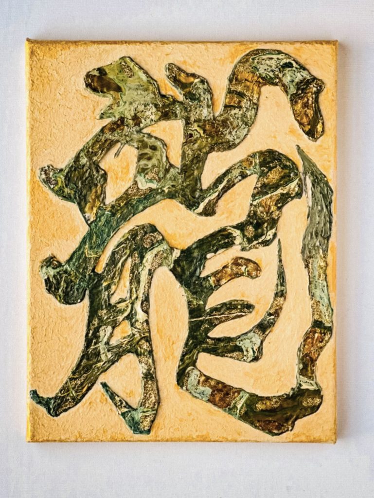 その古代の叡智を、書として描き、その書のエネルギーのまま立体化し、彩りの力で命を吹き込む。