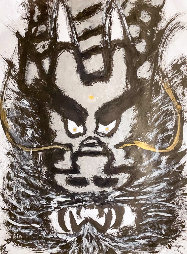 龍神の氣を宿した筆のカスレや立体的な線の現代版の護符アート。